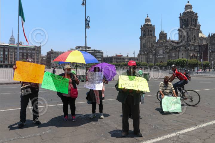 CIUDAD DE MÉXICO, 25MAYO2020.- Integrantes de la Alianza Fraternal Suprema Mexicana de Chimalhuacán, Estado de México, protestaron enfrente de Palacio Nacional para exigir apoyo a los tianguistas que desde el 26 de marzo no han podido realizar sus labores por la Contingencia Sanitaria Nacional por la pandemia del Coronavirus. Antonio Fernández, comerciante de chacharas, se cosió el lado derecho de labio como protesta de huelga de hambre y para exigir respuesta de las autoridades del gobierno. FOTO: GRACIELA LÓPEZ /CUARTOSCURO.COM