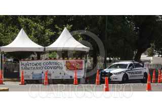 CIUDAD JUAREZ, CHIHUAHUA. 25MAYO2020.- Sujetos armados que pasaron por el lugar abrieron fuego en contra de los agentes estatales pertenecientes a la Policía Vial que se encuentran en el módulo sanitario que colocaron en el puente internacional Stanton, y no se reportan agentes heridos. Los Policías Viales pertenecen a Ciudad Juárez y desde que inició la pandemia apoyan con labores de filtro de salud al ingresar los vehículos por los puentes internacionales de Ciudad Juárez. FOTO: NACHO RUIZ/CUARTOSCURO.COM