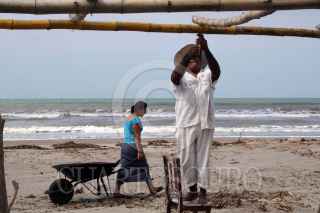 CENTLA, TABASCO, 28FEBRERO2006.- A pesar que el gobierno estatal decreto alerta de playas contaminadas, un ejidatario en playa Miramar realiza preparativos para recibir a los proximos vacacionistas. FOTO: Marco Polo Guzmán/CUARTOSCURO.COM