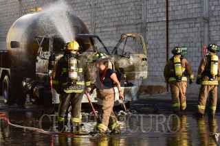 COACALCO, ESTADO DE MÉXICO. 26MAYO2020.- Explosión de una pipa de gas dentro de estación gaser, no se reportan personas lesionadas, solo daños materiales de una combi de pasajeros y un auto particular que pasaban en el momento de la explosión los hechos ocurrieron en la calle de Malaquías Huitron y Av las Torres colonia San Lorenzo Tetlixtac de este municipio. FOTO: ARMANDO MONROY/CUARTOSCURO.COM