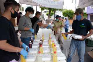 CULIACÁN, SINALOA. 26MAYO2020.- La iglesia del Carmen, a cargo del padre Miguel Ángel Soto, reparte todos los días hasta 300 comidas calientes para aquellas personas que se han quedado sin empleo durante la pandemia provocada por el Coronavirus en Culiacán. El alimento también es repartida a las personas en situación de calle (Indigentes). La iglesia se encuentra sobre la calle Jesús Andrade y Francisco Villa, de la zona centro. La comida es donada por algunos comerciantes y empresarios que se han solidarizado con la iglesia para dar comida a los más vulnerables por la pandemia. FOTO: JUAN CARLOS CRUZ /CUARTOSCURO.COM