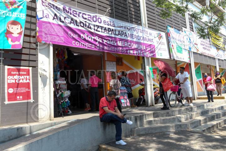 CIUDAD DE MÉXICO, 26MAYO2020.- Locatarios del Mercado del Barrio de San Miguel, alcaldía Iztapalapa, implementan los protocolos de las medidas sanitarias para no propagar más contagios de Covid-19 entre los capitalinos. FOTO: GRACIELA LÓPEZ /CUARTOSCURO.COM