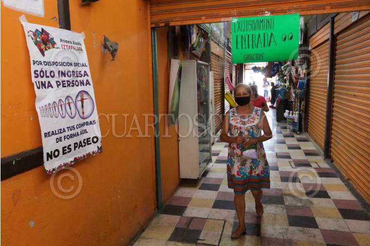 CIUDAD DE MÉXICO, 26MAYO2020.- Locatarios del Mercado del Barrio de San Miguel, alcaldía Iztapalapa, implementan los protocolos de las medidas sanitarias para no propagar más contagios de Covid-19 entre los capitalinos. FOTO: GRACIELA LÓPEZ /CUARTOSCURO.COM