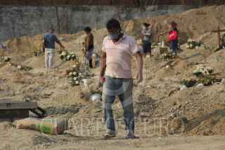 ACAPULCO, GUERRERO, 26MAYO2020.- Cuatro cuerpos más fueron sepultados en las fosas para víctimas de covid-19 en el panteón municipal de El Palmar de Acapulco. El gobierno municipal anunció que las inhumaciones son gratuitas. FOTO: CARLOS ALBERTO CARBAJAL /CUARTOSCURO.COM