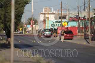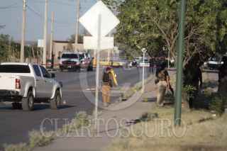 CIUDAD JUÁREZ, CHIHUAHUA, 28MAYO2020.- El ataque en contra de agentes de seguridad Publica ocurrió en la Plaza del Reloj que está en la calle Manuel J Clouthier y Copaiba de la colonia Infonavit Ampliación Aeropuerto y concluyó en el lugar conocido como en la Curva la Rosita, en Ciudad Juárez. El saldo fue de un presunto sicario quedó sin vida luego de recibir atención médica, otro fue un detenido y un guardia de Yonke también resultaron heridos pero no graves, según el reporte. Igualmente en el operativo fueron detenidos dos presuntos delincuentes que en las próximas horas serán turnados al Ministerio Público. FOTO: NACHO RUIZ /CUARTOSCURO.COM