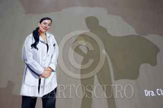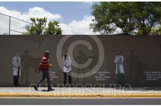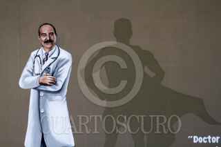 SAN NICOLÁS DE LOS GARZA, NUEVO LEÓN, 27MAYO2020.- Un mural dedicado a los Doctores de Nuevo León ilustra las sombras como súper héroes. FOTO: GABRIELA PÉREZ MONTIEL / CUARTOSCURO.COM