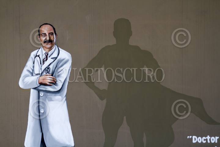 SAN NICOLÁS DE LOS GARZA, NUEVO LEÓN, 27MAYO2020.- Un mural dedicado a los Doctores de Nuevo León ilustra las sombras como súper héroes. FOTO: GABRIELA PÉREZ MONTIEL / CUARTOSCURO.COM