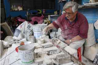 CIUDAD DE MEXICO, 27MAYO2020.- Jose Sánchez, es dueño de Mármolería San José, ubicado en el número 176 frente al panteón Panteón de San Nicolás Tolentino en la colonia Paraje San Juan en Iztapalapa. Un negocio familiar iniciado por su padre, hace más de 70 años, dedicado principalmente a la realización de cruces para sepulcros y altares, utilizando la técnica de vaciado con materiales como mármol y granito. Con 60 años de experiencia, el señor José, menciona que ha visto una disminución de venta de su producto, esto pese a la alta demanda de muertos en panteones de Iztapalapa, resultado de la emergencia sanitaria que atraviesa nuestro país por COVID-19, eso lo atribuye a la competencia desleal por parte de trabajadores dentro del panteón quienes en muchas ocasiones dañan o roban sus trabajos y al cierre de su negocio en pasados días por no ser un negocio esencial. ROGELIO MORALES /CUARTOSCURO.COM