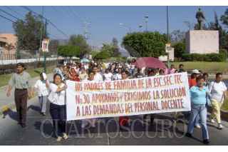 CHILPANCINGO, GUERRERO 13MARZO2006.- Padres de familia, maestros y alumnos de la secundaria técnica 30, marcharon por las principales calles de la ciudad, para exigir el esclarecimiento del asesinato del profesor Demetrio Nava Cerros, así mismo para solicitar al títular de la Secretaría de Educación en Guerrero (SEG) Jose Luis Gonzalez de la Vega Otero, dos maestros para la materia de español. FOTO: Oscar Alvarado/CUARTOSCURO.COM