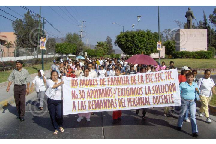 CHILPANCINGO, GUERRERO 13MARZO2006.- Padres de familia, maestros y alumnos de la secundaria técnica 30, marcharon por las principales calles de la ciudad, para exigir el esclarecimiento del asesinato del profesor Demetrio Nava Cerros, así mismo para solicitar al títular de la Secretaría de Educación en Guerrero (SEG) Jose Luis Gonzalez de la Vega Otero, dos maestros para la materia de español. FOTO: Oscar Alvarado/CUARTOSCURO.COM