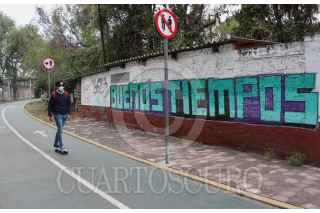 CIUDAD DE MEXICO, 28MAYO2020.- Pese a ser unas de las poblaciones más afectadas por la pandemia de COVID-19, jóvenes de la ciudad continúan saliendo a la calle para realizar actividades no esenciales. En imagen, joven se traslada en su patineta por una ciclovía de la colonia Providencia. ROGELIO MORALES /CUARTOSCURO.COM