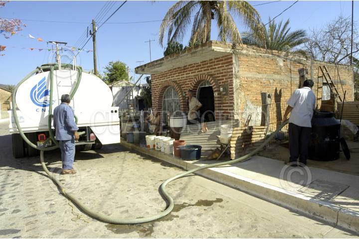 ECATEPEC, ESTADO DE MEXICO 14MARZO2006.- Debido a la escasez de agua, los habitantes tienen que comprar el vital lìquido. Una empleado descarga el agua en cubetas. FOTO: Guillermo Perea / CUARTOSCURO.COM