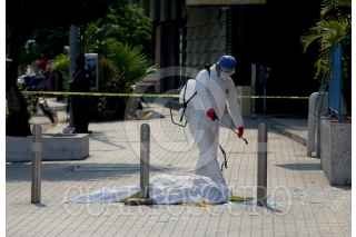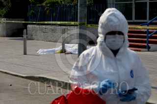 ACAPULCO, GUERRERO, 29MAYO2020.- Un paciente con síntomas de Covid-19 se suicidó arrojándose de uno de los pisos del Hospital Del Prado ubicado en la avenida Costera de Acapulco, el cuerpo del hombre quedo sobre la acera del hospital la cual fue acordonada para realizar los protocolos de salud sanitaria para realizar el levantamiento del cuerpo. FOTO: CARLOS ALBERTO CARBAJAL /CUARTOSCURO.COM