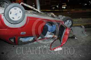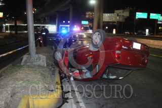Ciudad de México, 30 mayo 2020. Dos hombres perdieron la vida al volcar el auto en el que viajaban, sobre avenida Periférico y Circuito Azteca en la colonia Pueblo Quieto en alcaldía de Tlalpan. El exceso de velocidad y la falta de precaución al conducir, la combinación fatal que provoco este accidente. Foto: Luis Carbayo/cuartoscuro.com