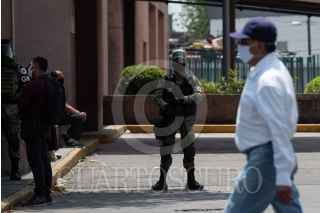 NAUCALPAN, ESTADO DE MÉXICO, 30MAYO2020.- El Hospital General de Zona 194 del IMSS, es resguardado por elementos de la Guardia Nacional, en uno de los accesos principales para atender a pacientes con coronavirus (covid-19). FOTO: MARIO JASSO /CUARTOSCURO.COM