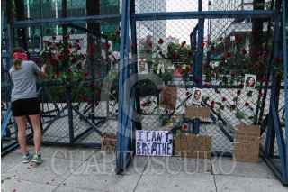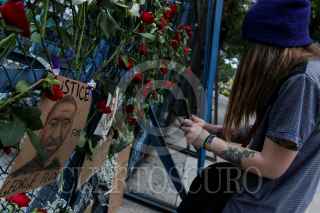 CIUDAD DE MÉXICO, 30MAYO2020.- Un homenaje en honor a George Floyd, ciudadano afroamericano muerto a manos de un policía en Minneapolis, Minnesota, y cuya muerte a desencadenado decenas de protestas contra la policía del país vecino, fue instalado en la reja que resguarda la embajada americana en la capital del país. Con un par de velas y rosas, ciudadanos honraron la memoria del hombre de 46 años muerto el pasado 25 de mayo del 2020. FOTO: GALO CAÑAS /CUARTOSCURO.COM