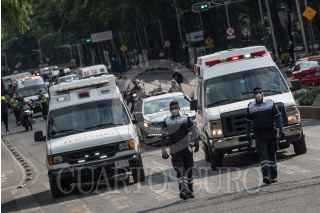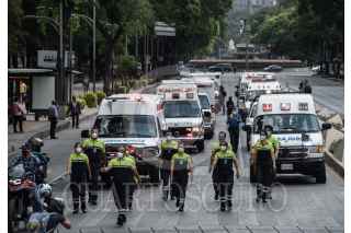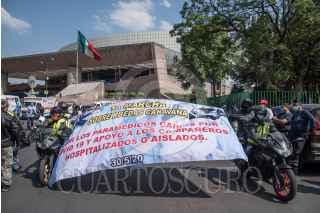 CIUDAD DE MÉXICO, 30MAYO2020.- Paramédicos de realizaron la primer "marcha sobre ruedas caravana" en apoyo y homenaje a sus compañeros hospitalizados, aislados o fallecidos durante la pandemia de coronavirus (covid-19). La rodada partió de Auditorio Nacional rumbo al Ángel de la Independencia. FOTO: MARIO JASSO /CUARTOSCURO.COM