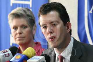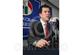 MEXICO D.F. 14MARZO2006.- Georgina Breakwell y Larry David Rubin, integrantes de American Chamber/México, durante conferencia de prensa, donde se habló de los pormenores de la propuesta de legalización de imigrantes latinos en los Estados Unidos. FOTO: Diego Gallegos/CUARTOSCURO.COM