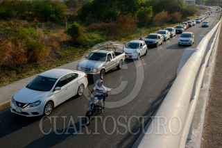 CULIACÁN, SINALOA. 01JUNIO2020.- Haciendo cola por lo "esencial". Hasta un kilómetro y por tres horas automovilistas hicieron cola para comprar cerveza en un expendio de la zona norte de la ciudad, durante el fin de semana, provocando caos y congestionamiento vial. La semana pasada Gobierno del Estado canceló la Ley seca, la cual había sido implementada para prevenir contagios masivos de Covid-19 en Sinaloa, y autorizó de nuevo la venta de cerveza provocando que la gente abarrotara los expendios. FOTO: JUAN CARLOS CRUZ/CUARTOSCURO.COM