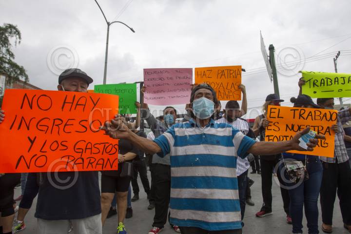 MONTERREY, NUEVO LEÓN, 02JUNIO2020.- Trabajadores de bares y casinos de Nuevo León, marcharon por las calles de Monterrey, pidiendo que se reabran sus centros de trabajo, culminando en el Palacio de Gobierno. FOTO: GABRIELA PÉREZ MONTIEL / CUARTOSCURO.COM