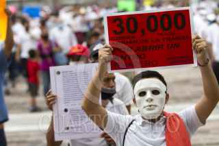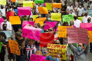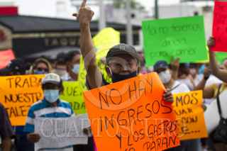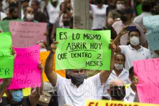 MONTERREY, NUEVO LEÓN, 02JUNIO2020.- Trabajadores de bares y casinos de Nuevo León, marcharon por las calles de Monterrey, pidiendo que se reabran sus centros de trabajo, culminando en el Palacio de Gobierno. FOTO: GABRIELA PÉREZ MONTIEL / CUARTOSCURO.COM