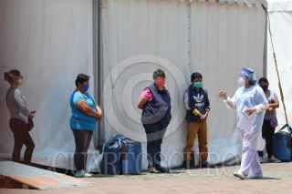CIUDAD DE MÉXICO, 02JUNIO2020.- Familiares de pacientes con Covid-19 recibieron informes del estado de salud de sus seres queridos en el Hospital General Tláhuac. A las 12 y 1 de la tarde comienzan el horario específico para recibir información, realizar videollamadas y dejar productos de uso personal. FOTO: GRACIELA LÓPEZ /CUARTOSCURO.COM