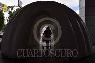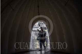 ATIZAPÁN DE ZARAGOZA, ESTADO DE MÉXICO, 03JUNIO2020.- Personas ingresan a un túnel sanitizador colocado en una tienda comercial de la entidad como forma de prevención de propagación de coronavirus (covid-19). FOTO: MARIO JASSO /CUARTOSCURO.COM