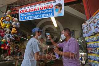 GUADALAJARA, JALISCO, 03JUNIO2020.- A tres días de la reactivación económica para algunos negocios en el estado y después de un largo periodo de confinamiento por la pandemia sanitaria del coronavirus (Covid-19), algunos locales del Mercado Libertad o San Juan de Dios retomaron actividades, cumpliendo con los protocolos sanitarios que ordeno el Gobierno del estado y en lo que se denomina la nueva normalidad. FOTO: FERNANDO CARRANZA GARCIA / CUARTOSCURO.COM