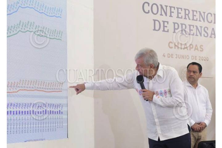 PALENQUE, CHIAPAS, 04JUNIO2020.- Conferencia mañanera encabezada por el presidente Andrés Manuel López Obrador donde reconoció los trabajos del gobernador Rutilio Escandón en materia de seguridad. De igual modo el jefe del ejecutivo llamo a la calma tras registrarse el número más alto de fallecidos por Covid-19 el día de ayer (1092). FOTO: PRESIDENCIA /CUARTOSCURO.COM