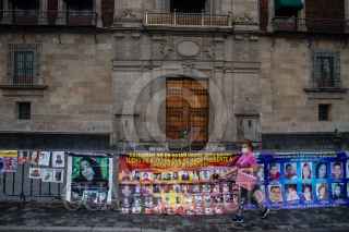 CIUDAD DE MÉXICO, 04JUNIO2020.- Madres de víctimas de desaparición forzada, se manifestaron frente a Palacio Nacional colocando las fotografías de sus hijos. Exigen que las autoridades continúen las investigaciones y búsqueda pertinente para la localización con vida de sus seres queridos. FOTO: ANDREA MURCIA/CUARTOSCURO.COM