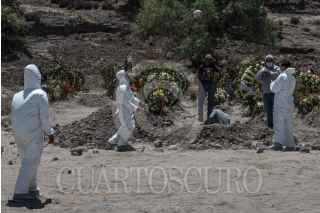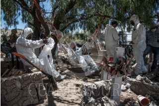 CHALCO, ESTADO DE MÉXICO, 04JUNIO2020.- Trabajadores del Panteón de Municipal del Valle de Chalco han tenido que sumarse a las medidas de prevención cuando realizan inhumaciones de personas que fallecieron por covid-19. En sus tiempos libres descansan debajo de las sombras de los árboles e improvisan diversas actividades como jugar futbol. FOTO: MARIO JASSO /CUARTOSCURO.COM