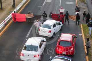 Estudiantes de la Facultad de Humanidades de la UAEM, que continúan en paro, cerraron la circulación en Paseo Tollocan en protesta por el asesinado de Giovanni López, presuntamente cometido por policías del municipio de Ixtlhuacán en Jalisco, por no portar cubrebocas, exigiendo justicia. FOTO: CRISANTA ESPINOSA AGUILAR /CUARTOSCURO.COM