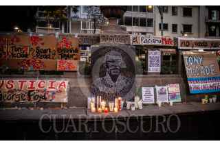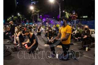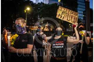 CIUDAD DE MÉXICO, 04JUNIO2020.- Personas en su mayoría extranjeros, se manifestaron de manera pacifica frente a la embajada de los Estados Unidos por el asesinato de George Floyd, afroamericano asesinado por un policía norteamericano. Durante la manifestación se guardaron 8 minutos de silencio, y se realizó un memorial con veladoras. FOTO: ANDREA MURCIA/CUARTOSCURO.COM