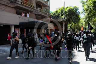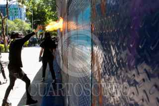 CIUDAD DE MEXICO, 05JUNIO2020.- Decenas de personas denominadas “Antifascistas” se manifestaron en la periferia de la embajada de los Estados Unidos con motivo de la muerte del afroamericano George Floyd quien perdió la vida a manos de un policía estadounidense. A su vez, las manifestaciones se unen a las exigencias de justicia por la muerte de Giovanni López, quien murió tras ser detenido por policías Ixtlahuacan de los Membrillos, Jalisco por no portar cubrebocas. Los inconformes realizaron pintas y quebraron cristales de locales aledaños. También se registran representantes de los medios de comunicación lesionados. FOTO: ROGELIO MORALES /CUARTOSCURO.COM