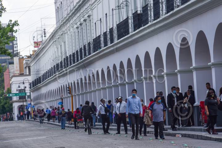 La circulación vehicular en el primer cuadro del Centro Histórico se Toluca fue reducida, ante el incremento de casos por COVID-19, esta medida preventiva será del 5 hasta el 14 de junio. El número de personas en la calle aumentó considerablemente esta semana. FOTO: CRISANTA ESPINOSA AGUILAR /CUARTOSCURO.COM