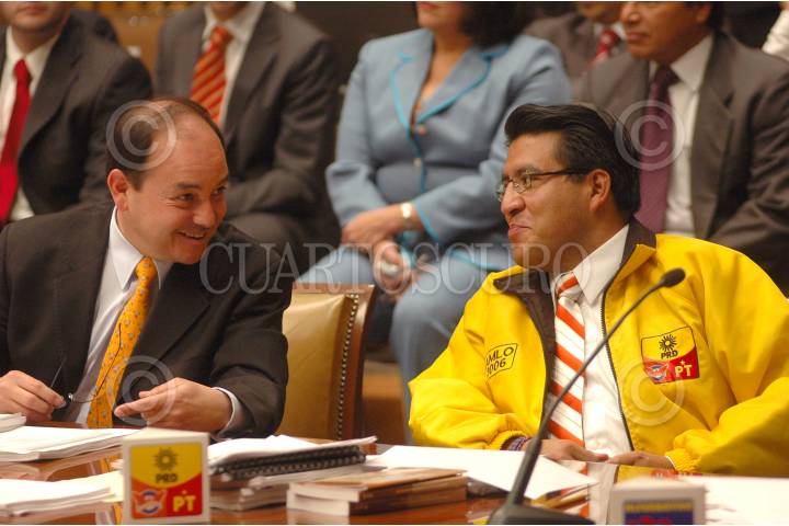 MÉXICO, D.F. 15MARZO2006.- El consejero electoral Andrés Albo, Luis Carlos Ugalde, consejero presidente, y el secretario Manuel López durante la sesión extraordinaria del Instituto Federal Electoral. FOTO: Iván Stephens/CUARTOSCURO.COM
