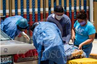 CIUDAD DE MÉXICO, 08JUNIO2020.- Un señora de la tercera edad murió en un automóvil en el estacionamiento del Hospital General, en el área donde se encuentra el cubículo de Triage Covid-19, su nieto la traslado al nosocomio por que en la mañana empezó a tener problemas respiratorios, señalo que su familiar no había presentado síntomas previos de Coronavirus. Al llegar al hospital intentó reanimarla con respiración de boca a boca, sin embargo, las médicos le confirmaron el deceso tras tomarle los signos vitales. Tras permanecer por varios minutos en el vehículo en donde sus familiares se despidieron de ella, personal médico la traslado al interior de urgencias para expedir el acta de defunción. FOTO: MOISÉS PABLO/CUARTOSCURO.COM