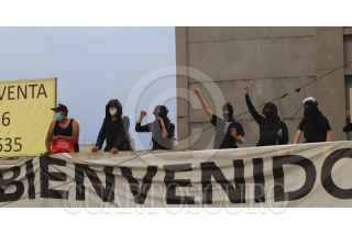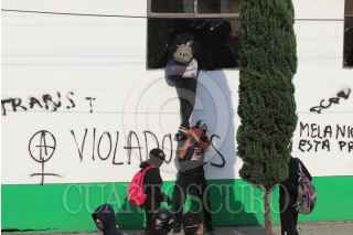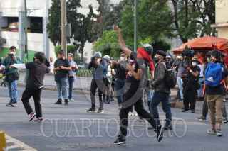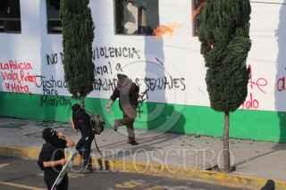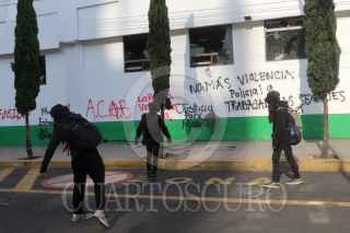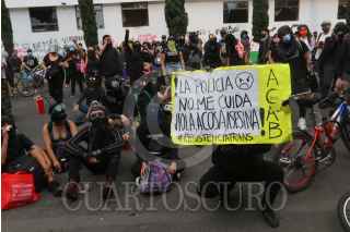 CIUDAD DE MÉXICO, 08JUNIO202O.- Decenas de encapuchados llegaron a la Fiscalía General de la Justicia (FGR) para exigir justicia por Melanie, mujer de 15 años, quién fue agredida por los policías cuando ella se manifestaba en la marcha que se convocó el viernes pasado para pedir justicia por el asesinato de Giovanni en Guadalajara y de George Floyd en Minesota. FOTO: GRACIELA LÓPEZ /CUARTOSCURO.COM