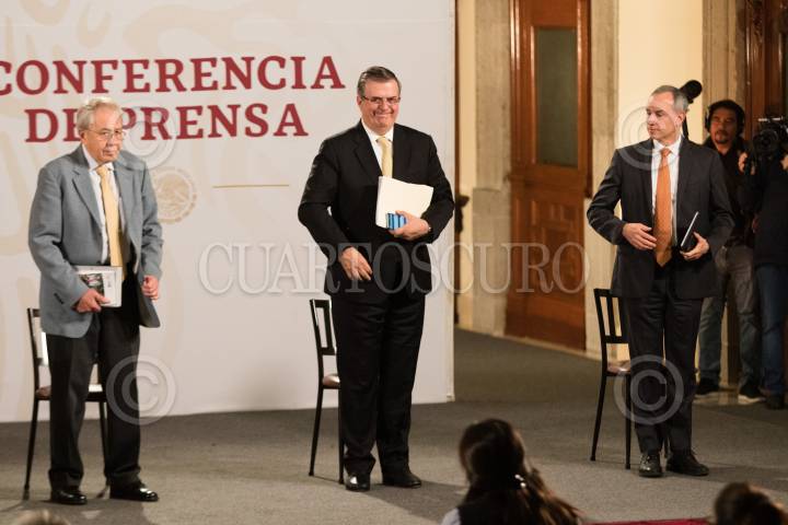 CIUDAD DE MÉXICO, 08JUNIO2020. - Andrés Manuel López Obrador, Presidente de México, encabezó este martes la conferencia matutina en Palacio Nacional. Lo acompañaron Marcelo Ebrard Casaubón, secretario Relaciones Exteriores; Jorge Alcocer Varela, secretario de Salud, y Hugo López-Gatell, subsecretario de Salud. FOTO: MOISÉS PABLO/CUARTOSCURO.COM