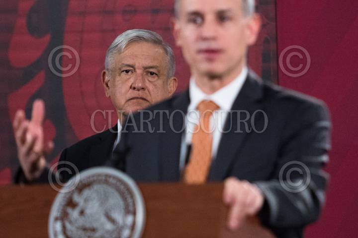 CIUDAD DE MÉXICO, 08JUNIO2020. - Andrés Manuel López Obrador, Presidente de México, encabezó este martes la conferencia matutina en Palacio Nacional. Lo acompañaron Marcelo Ebrard Casaubón, secretario Relaciones Exteriores; Jorge Alcocer Varela, secretario de Salud, y Hugo López-Gatell, subsecretario de Salud. FOTO: MOISÉS PABLO/CUARTOSCURO.COM