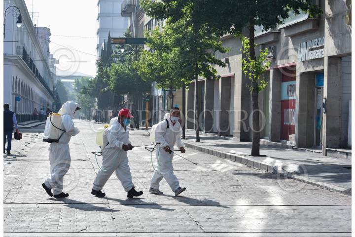 Continúan trabajos de sanitización y lavado a presión de espacios públicos en la capital mexiquense, en donde las medidas sanitarias han aumentado al tenerse más casos positivos por COVID-19. FOTO: CRISANTA ESPINOSA AGUILAR / CUARTOSCURO.COM