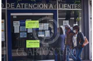 El ayuntamiento de Toluca suspendió la actividad comercial de un centro de Atención Telcel y el banco Banamex al recibir varias denuncias por parte de la población al concentrarse un gran número de personas sin seguir las medidas de precaución durante la contingencia por COVID-19, y no contar con sus papeles en orden. FOTO: CRISANTA ESPINOSA AGUILAR /CUARTOSCURO.COM