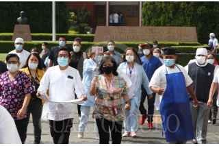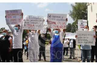 CIUDAD DE MEXICO, 10JUNIO2020.- Personal médico del Instituto Nacional de Enfermedades Respiratorias, se manifestó dentro del nosocomio, durante cerca de 30 minutos para posteriormente hacerlo al exterior, los inconformes exigen insumos de protección para el combate contra el COVID-19, así mismo una respuesta clara, sobre el riesgo laboral para compañeros contagiados al desempeñar su trabajo. FOTO: ROGELIO MORALES /CUARTOSCURO.COM