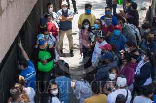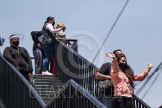 CIUDAD DE MÉXICO, 10JUNIO2020.- Familiares esperan noticias del personal médico de como evolucionan sus familiares enfermos de Covid-19, en el Hospital de Infectología Dr. Daniel Mendez Hernández de la Raza. Muchos de ellos los saludan desde unas escaleras peatonales, y es que por el nivel de contagio es imposible que los visiten presencialmente durante su convalecencia en el nosocomio. FOTO: MOISÉS PABLO/CUARTOSCURO.COM