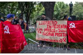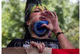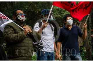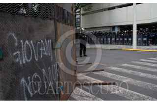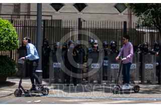 CIUDAD DE MÉXICO, 10JUNIO2020.- Jóvenes de distintos colectivos se manifestaron frente a la Casa representación de Jalisco para exigir justicia para los jóvenes Geovanni de Jalisco y Melanie, joven agredida por policías durante manifestación el sábado pasado. pese a la poca congregación, decenas de policías resguardaban las inmediaciones de la Casa. FOTO: ANDREA MURCIA/CUARTOSCURO.COM