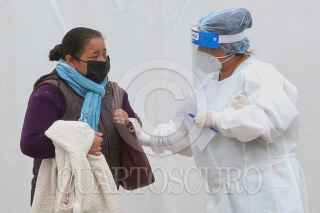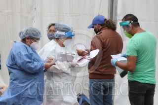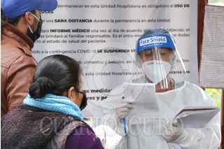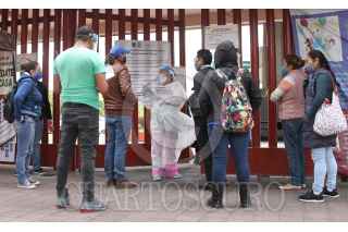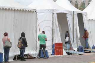 CIUDAD DE MEXICO, 11JUNIO2020.- El Hospital General de Tláhuac, continúa con la atención de personas contagiadas por COVID-19, en punto de las 11:30 familiares de pacientes internados arriban al nosocomio para dejar insumos como: agua, gel antibacterial y jabón, también aprovechan para enviar cartas a sus seres queridos. Así mismo reciben noticias de sus pacientes en pequeñas carpas, donde personal médico les informa del estado de los pacientes contagiados. FOTO: ROGELIO MORALES /CUARTOSCURO.COM