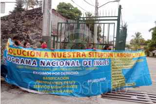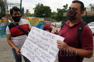 CUERNAVACA, MORELOS, 11JUNIO2020.- Maestros que trabajan para el Instituto de Educación Básica del Estado de Morelos, protestan en la entrada de las oficinas, exigen que sea regularizada su labor en el Programa Nacional de Ingles, pues hasta el momento solo reciben un trato injusto por no tener la base. Son más de 140 maestros que no tiene asegurado su futuro laboral y la respuesta de las autoridades, acusan, opera en contra de ellos. FOTO: MARGARITO PÉREZ RETANA /CUARTOSCURO.COM