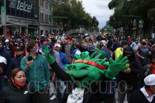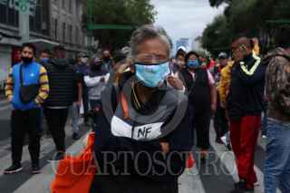 CIUDAD DE MÉXICO, 11JUNIO2020.- Artistas urbanos y comerciantes ambulantes se manifestaron en el primer cuadro de la capital del país para exigir al gobierno apoyos y reapertura de sus centros de trabajo, cerrados desde la fase 2 de contagios por Covid-19. Los inconformes declaran que los préstamos ofrecidos por el gobierno son insuficientes para su solvencia. Actualmente, el territorio nacional se encuentra en el pico de contagios con más de 124 mil casos confirmados y 15, 357 fallecimientos. FOTO: GALO CAÑAS /CUARTOSCURO.COM