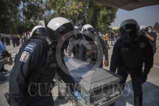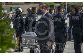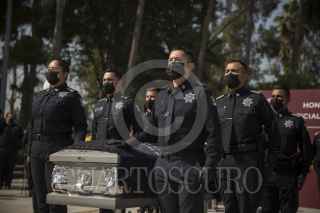 TIJUANA, BAJA CALIFORNIA, 11JUNIO2020.- Agentes de la Policía Municipal y familiares dieron el último adiós al oficial Joel Ruiz, quien falleció después de haber sufrido un ataque con un arma punzo cortante, esto el pasado 24 de mayo en la colonia 10 de mayo. Durante el acto, autoridades mostraron su molestia después que el juez encargado del caso puso en libertad al presunto agresor del policía. FOTO: OMAR MARTÍNEZ /CUARTOSCURO.COM