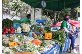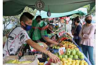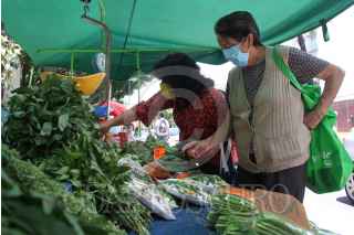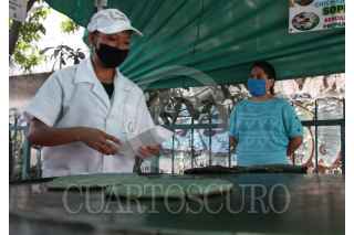 CIUDAD DE MEXICO, 12JUNIO2020.-Tianguis de la ciudad, mantienen de manera permanente las medidas sanitarias como; aplicación de gel antibacterial, mantener la sana distancia entre comerciantes y clientes y el uso de cubrebocas en todo momento, esto con el objetivo de reducir los riesgos de contagios por COVID-19, ante la reapertura de la economía y la entrada de la nueva normalidad. FOTO: ROGELIO MORALES /CUARTOSCURO.COM